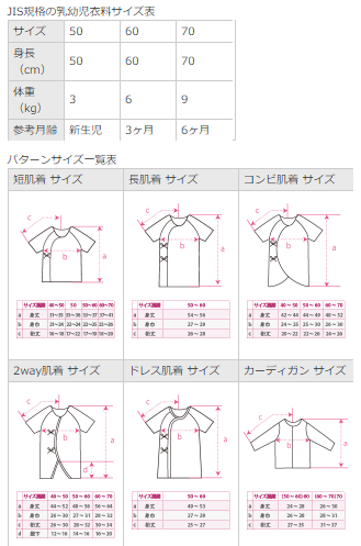 50サイズ~70サイズの展開です。項目がとっても細かい!